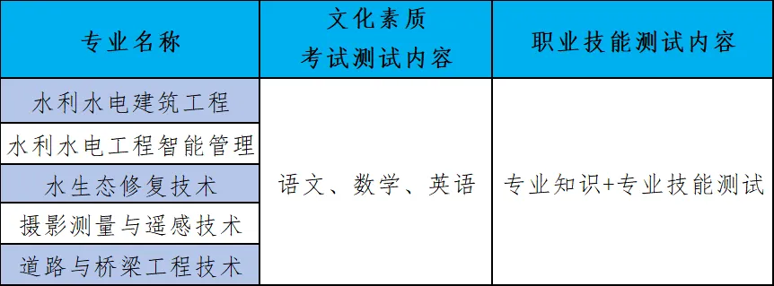 第十四條 此次高職單獨招生考試采取“文化素質+職業技能測試”的模式,考試時間為3月31日(其中文化素質測試時間為3月31日上午9:00—10:30,專業知識測試時間為3月31日上午10:30—11:30,專業技能測試時間為3月31日下午13:00開始)。各專業考試方式具體見下表。